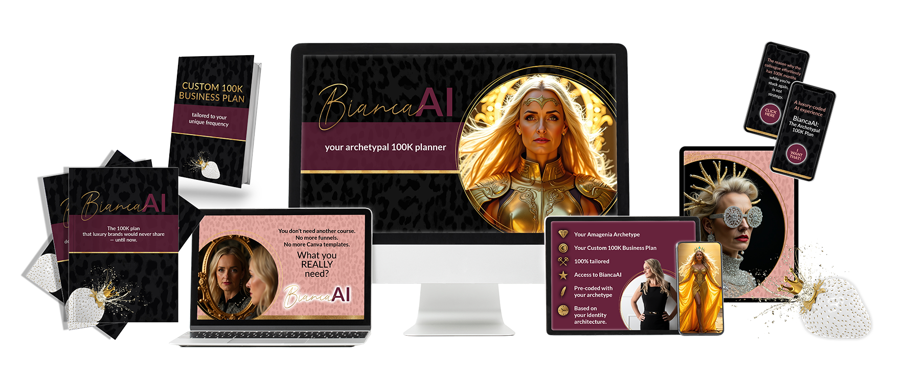 As the creator of four Archetypes and the Bianca AIs, she decodes the secret psychology of luxury brands and turns it into archetypal systems that help entrepreneurs attract and serve 100K-clients with precision and ease.